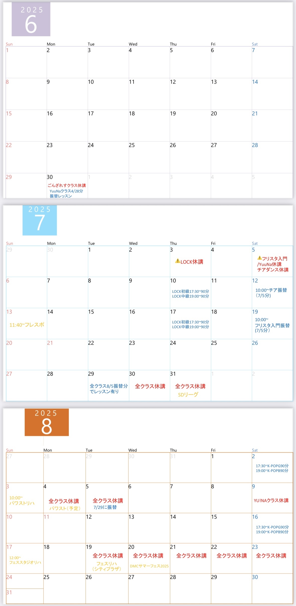 【新クラスのお知らせ📢】 4月より大人クラスが始まります!✨ ダンスはじめてや初心者の方を対象に ダンスを楽し・・・2025年4月5月スケジュール